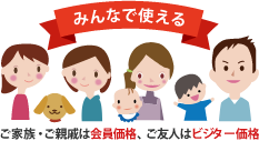 あなたが会員になると、友人や同僚、家族も一緒に会員限定価格で利用できるから、みんなでお得に楽しめます。